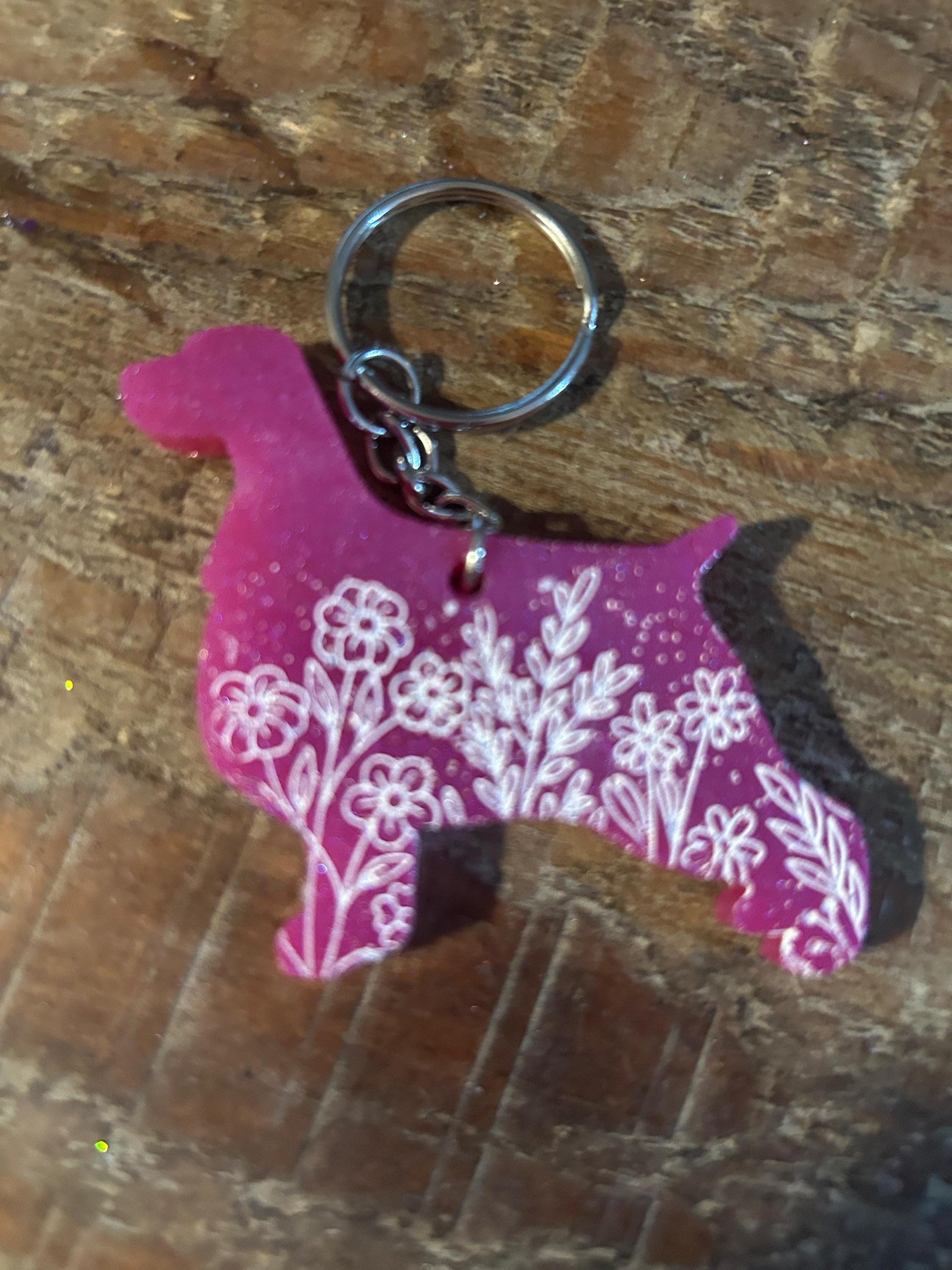 Crafted with care, our English Springer Spaniel Keychain is made from high-quality epoxy resin, ensuring durability and a glossy finish that catches the light beautifully. With over 100 colors to choose from, you can find the perfect shade that matches your style or even your Springer's unique coat! Whether you prefer a classic look or something bold and bright, we have a color that will suit your taste.