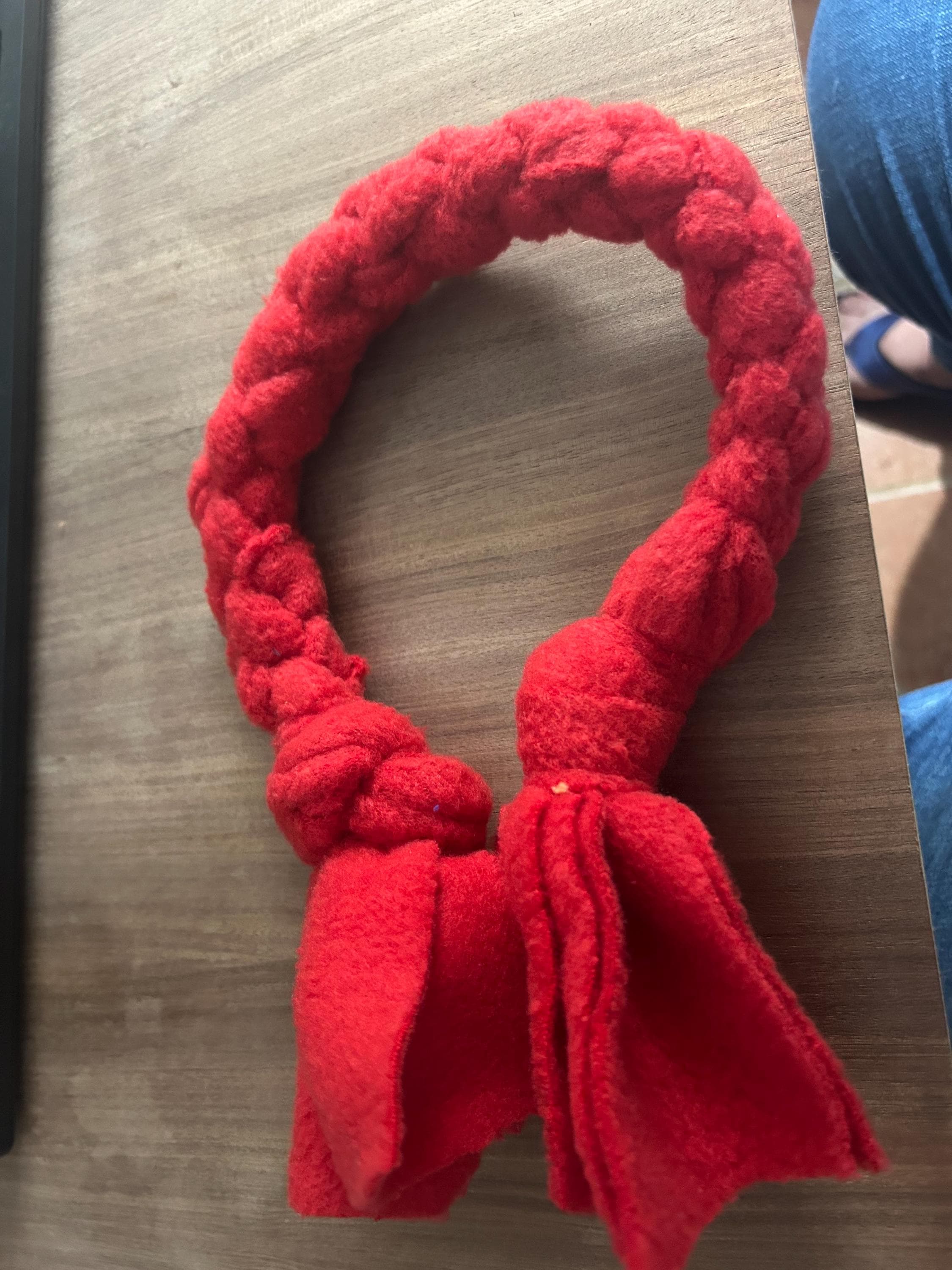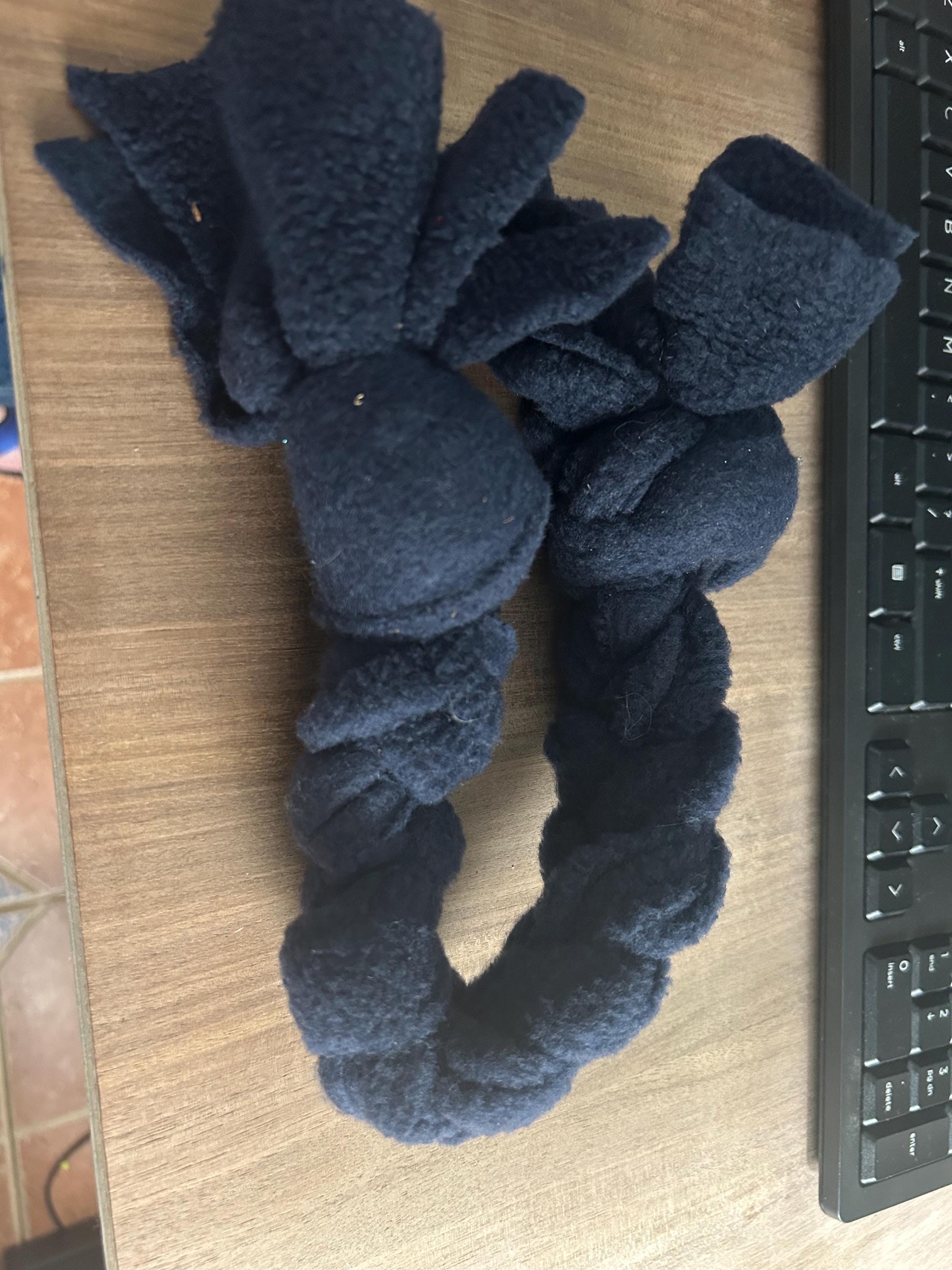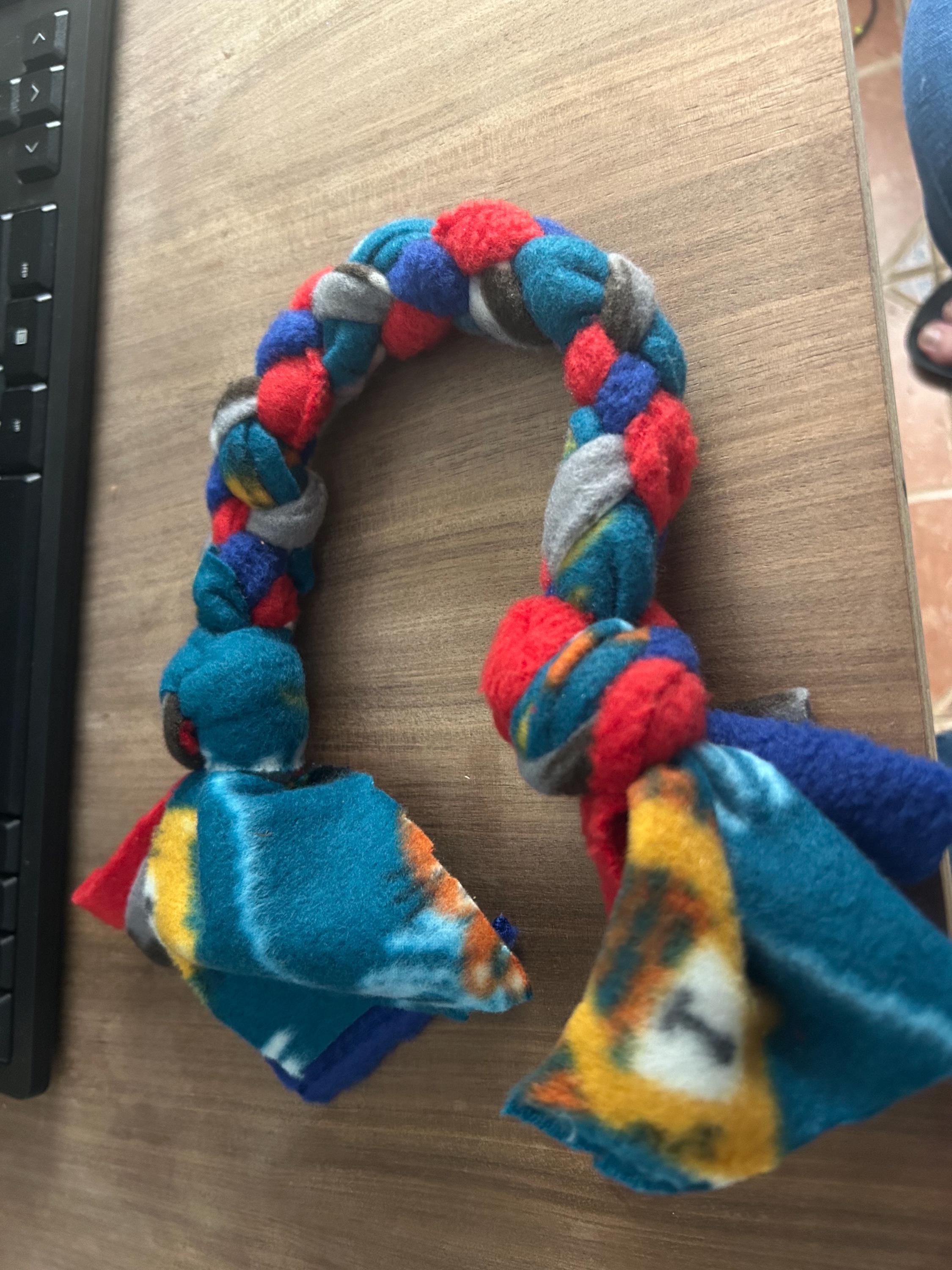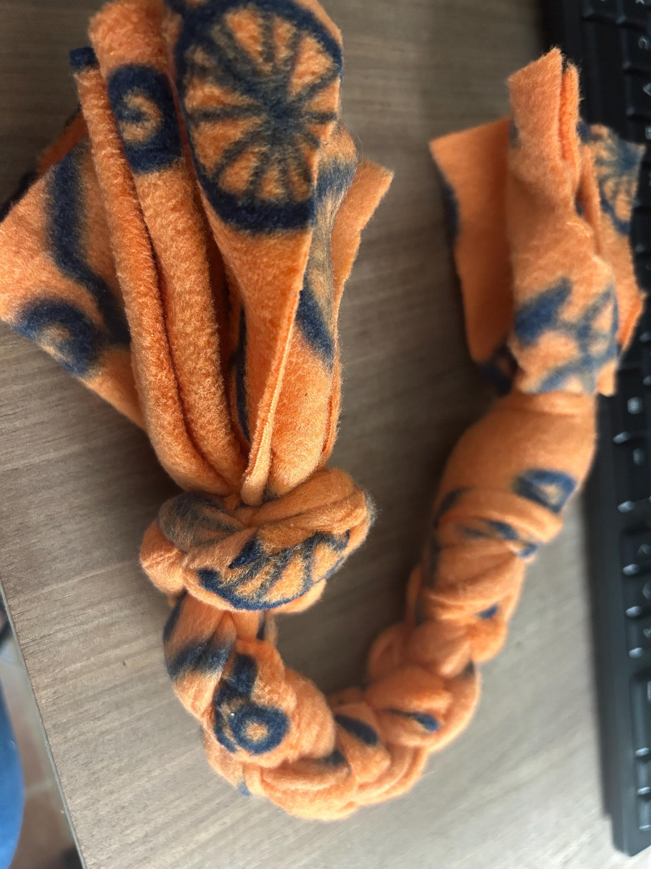 Hand braided fleece dog tug toys. Great for playing fetch or tug with your special friend. Machine Washable.