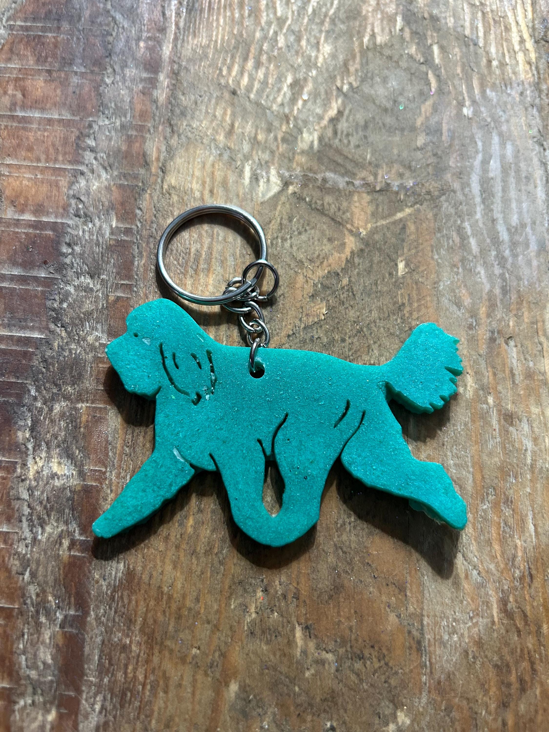 Crafted with care, our Barbet Keychain is made from high-quality epoxy resin, ensuring durability and a glossy finish that catches the light beautifully. With over 100 colors to choose from, you can find the perfect shade that matches your style or even your Barbet's  unique coat! Whether you prefer a classic look or something bold and bright, we have a color that will suit your taste.