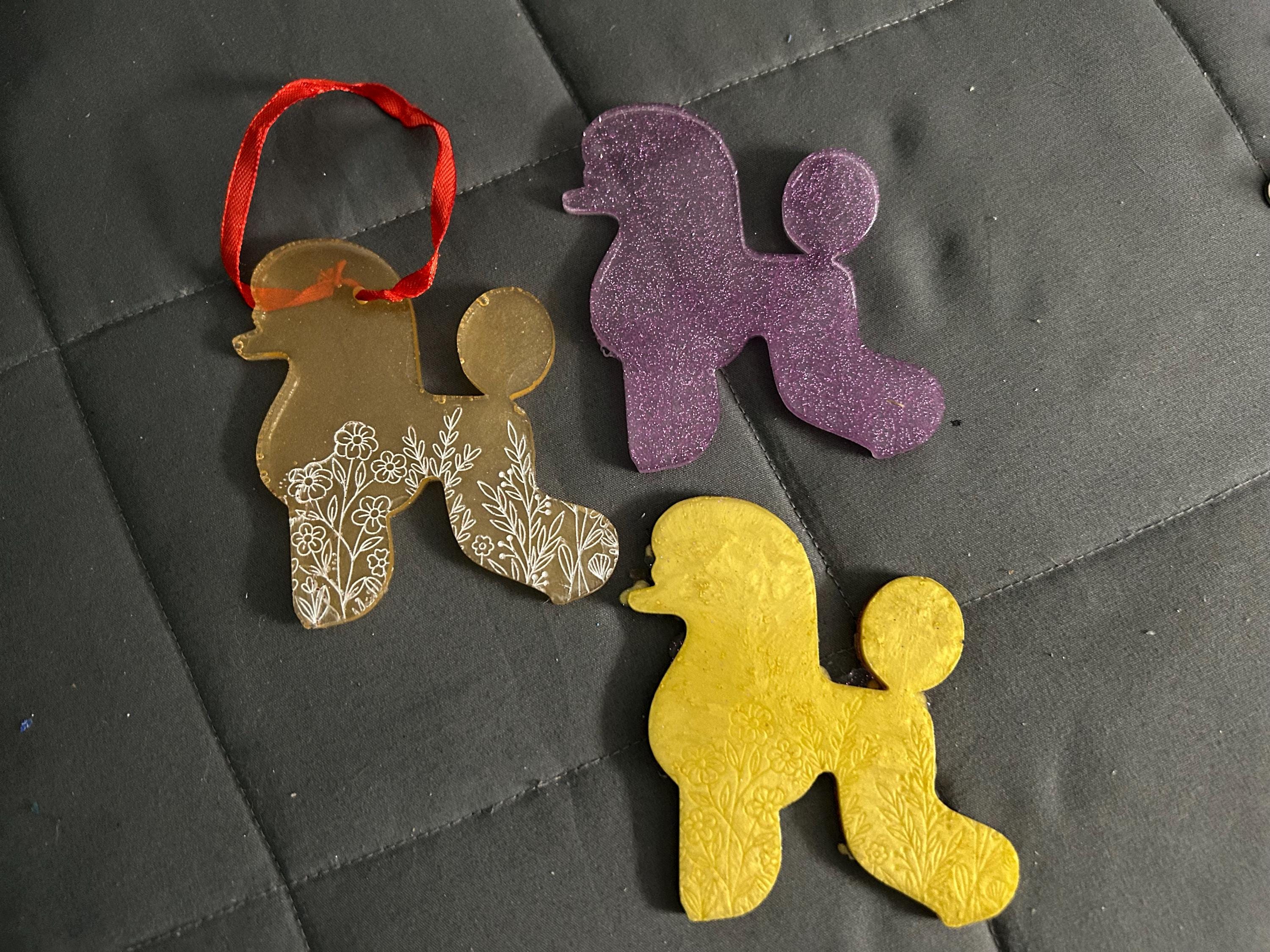 Crafted with care, our Poodle Ornament/Magnet is made from high-quality epoxy resin, ensuring durability and a glossy finish that catches the light beautifully. With over 100 colors to choose from, you can find the perfect shade that matches your style or even your Poodle's unique coat! Whether you prefer a classic look or something bold and bright, we have a color that will suit your taste.