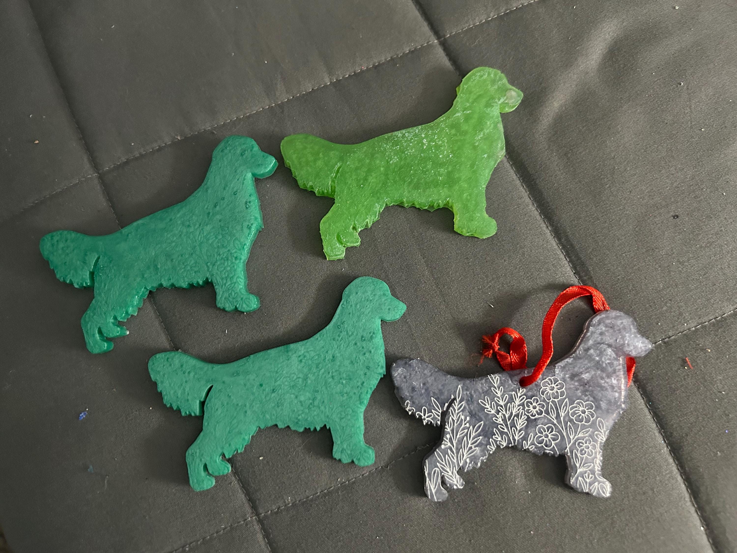 Crafted with care, our Golden Retriever Ornament/Magnet is made from high-quality epoxy resin, ensuring durability and a glossy finish that catches the light beautifully. With over 100 colors to choose from, you can find the perfect shade that matches your style or even your Golden Retriever's unique coat! Whether you prefer a classic look or something bold and bright, we have a color that will suit your taste.