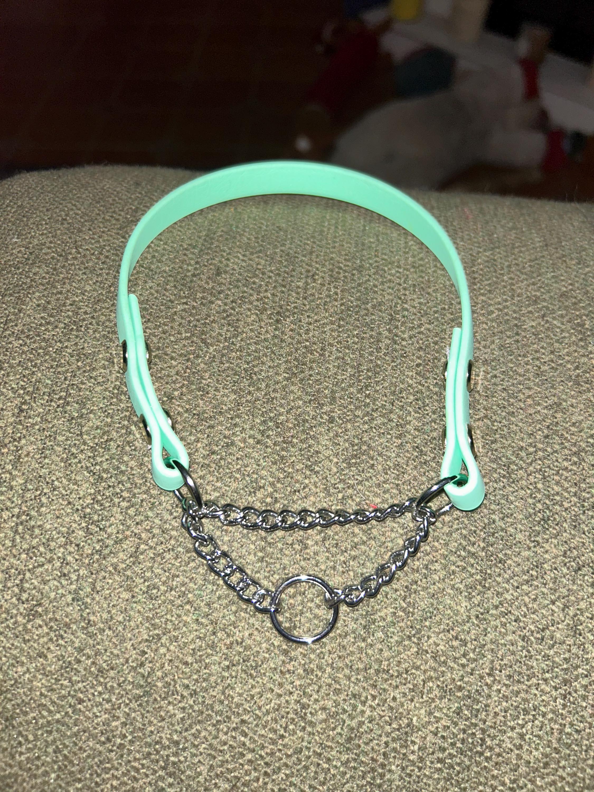 Discover the perfect balance of elegance and performance with our Biothane Martingale Collars. Designed for discerning dog owners, these collars combine timeless style with the superior durability of Biothane — a premium material that looks and feels like leather but is fully waterproof, odor-resistant, and effortless to maintain.