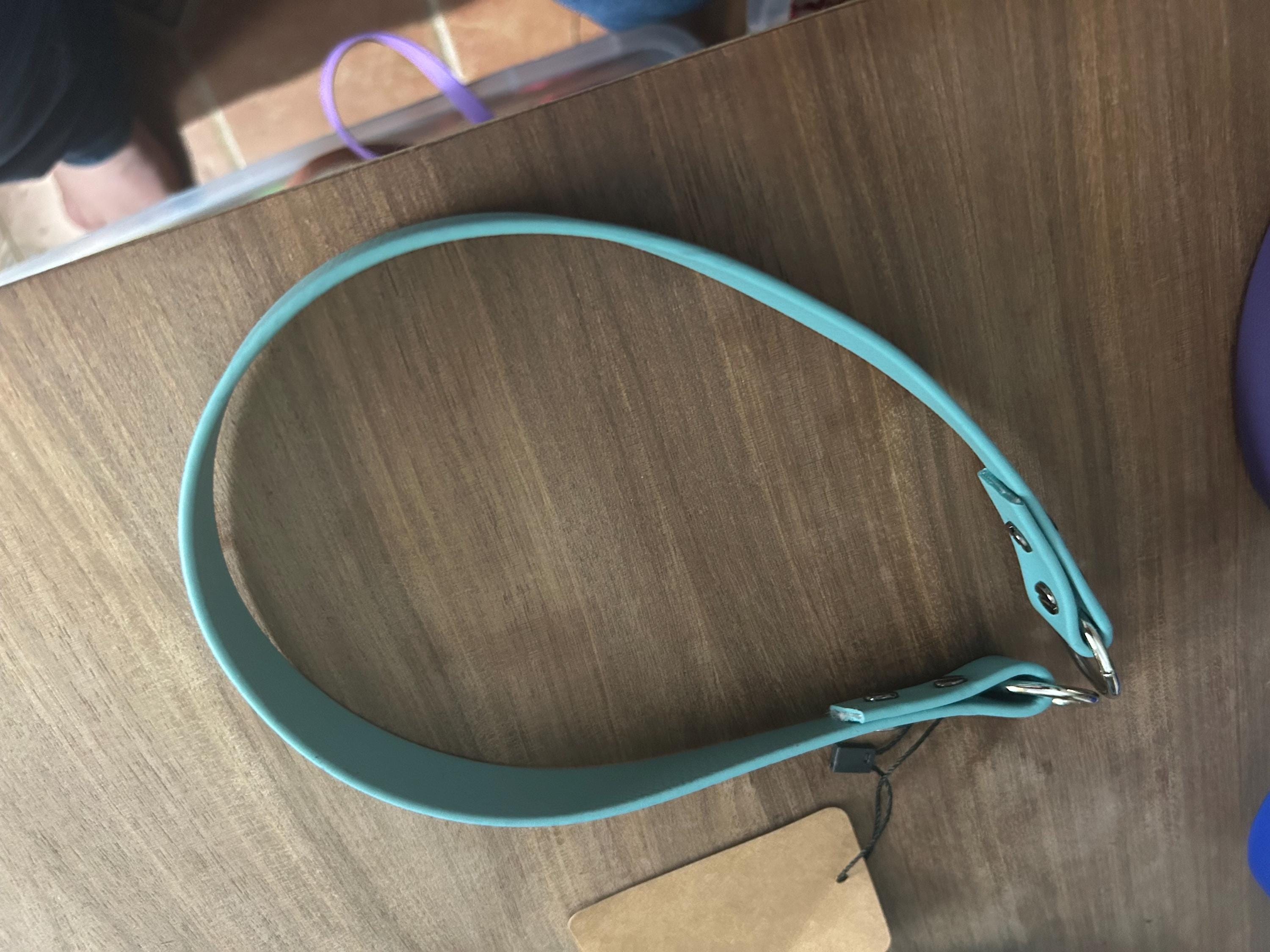 Crafted from premium 3/4" Biothane, it looks and feels like leather but is completely waterproof, odor-resistant, and easy to clean. The smooth surface slides effortlessly for quick, even corrections, making it ideal for training, showing, or everyday walks.