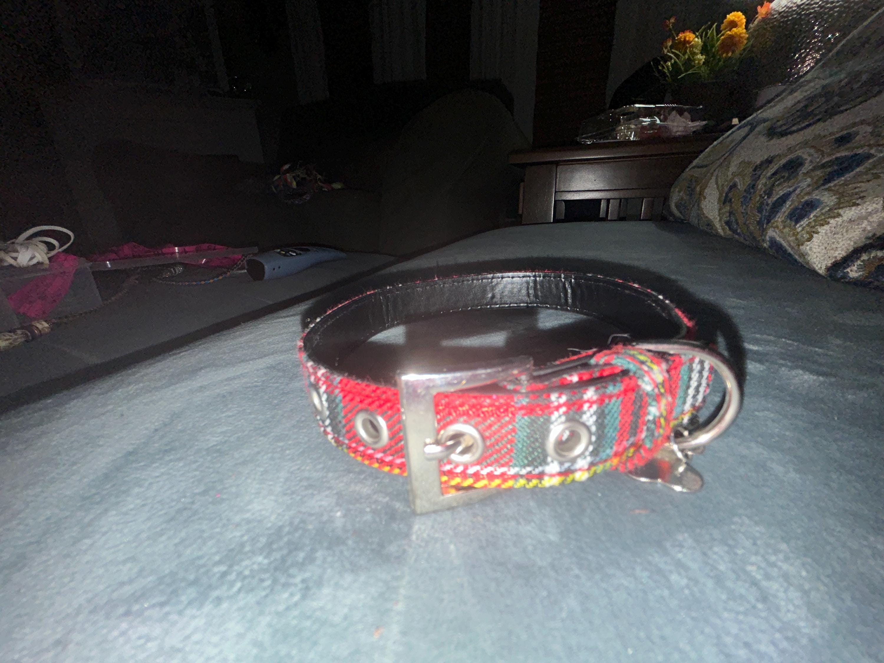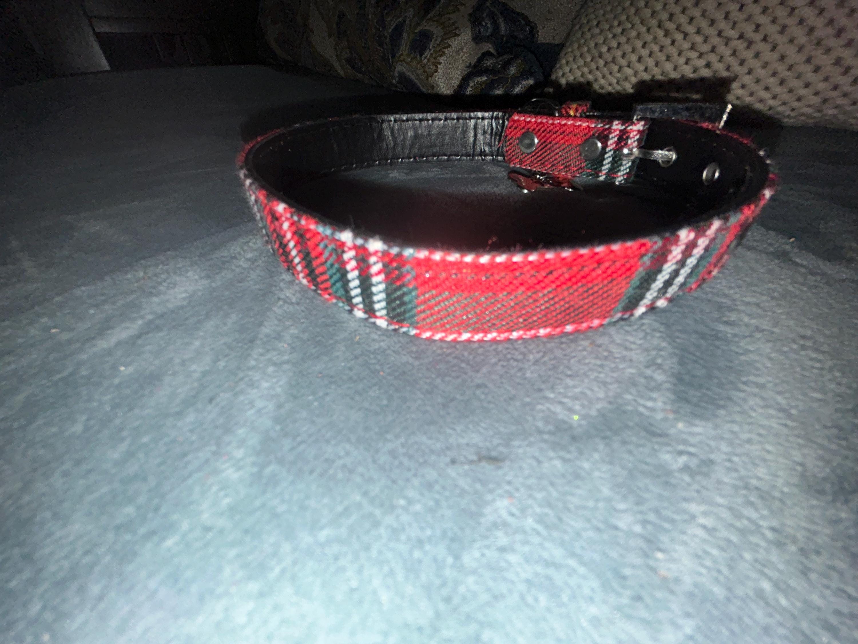 Crafted from durable, high-quality webbing wrapped in soft plaid fabric, this collar combines comfort, strength, and sophistication. The traditional buckle closure provides a secure, adjustable fit, while sturdy hardware ensures it’s built to last through every walk and adventure.