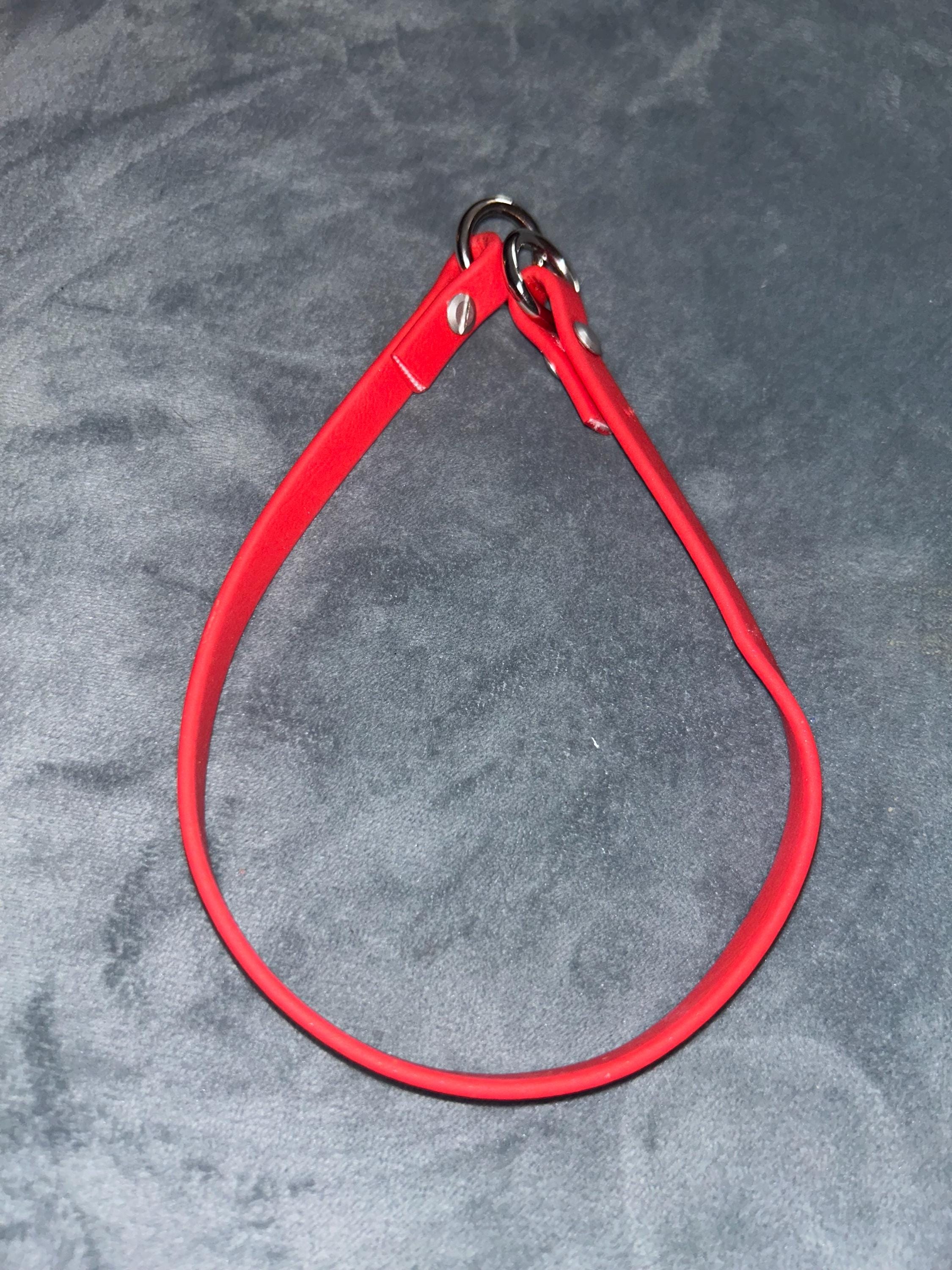 Sleek, strong, and built for performance — our 3/8" Biothane Choke Collar delivers classic style with modern durability. Designed for handlers who appreciate clean lines and reliable control, this collar combines the timeless function of a choke-style design with the comfort and convenience of Biothane.