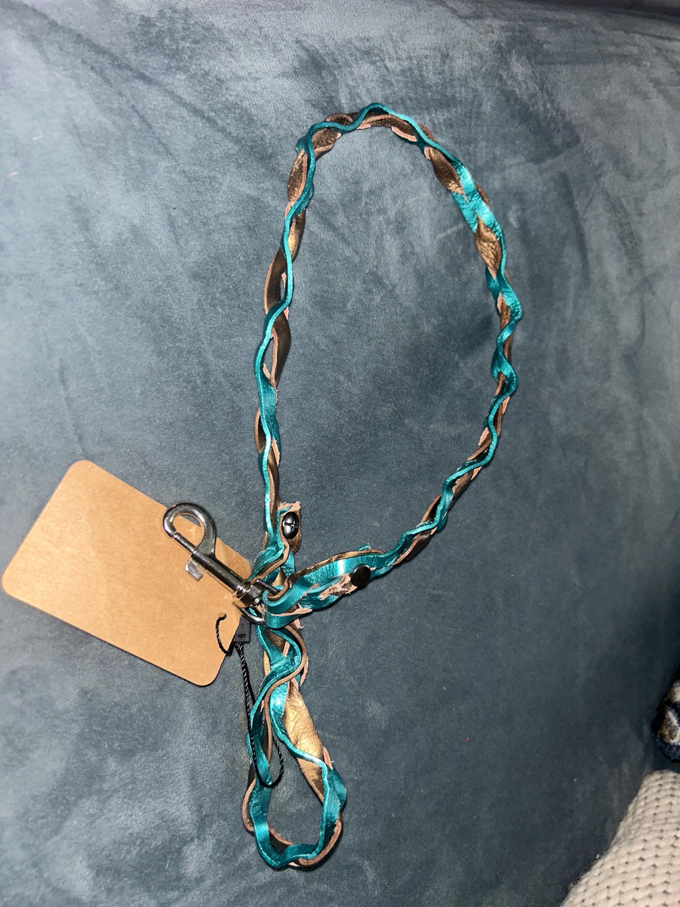 2' Braided Leather Dog Leash – Turquoise and Olive