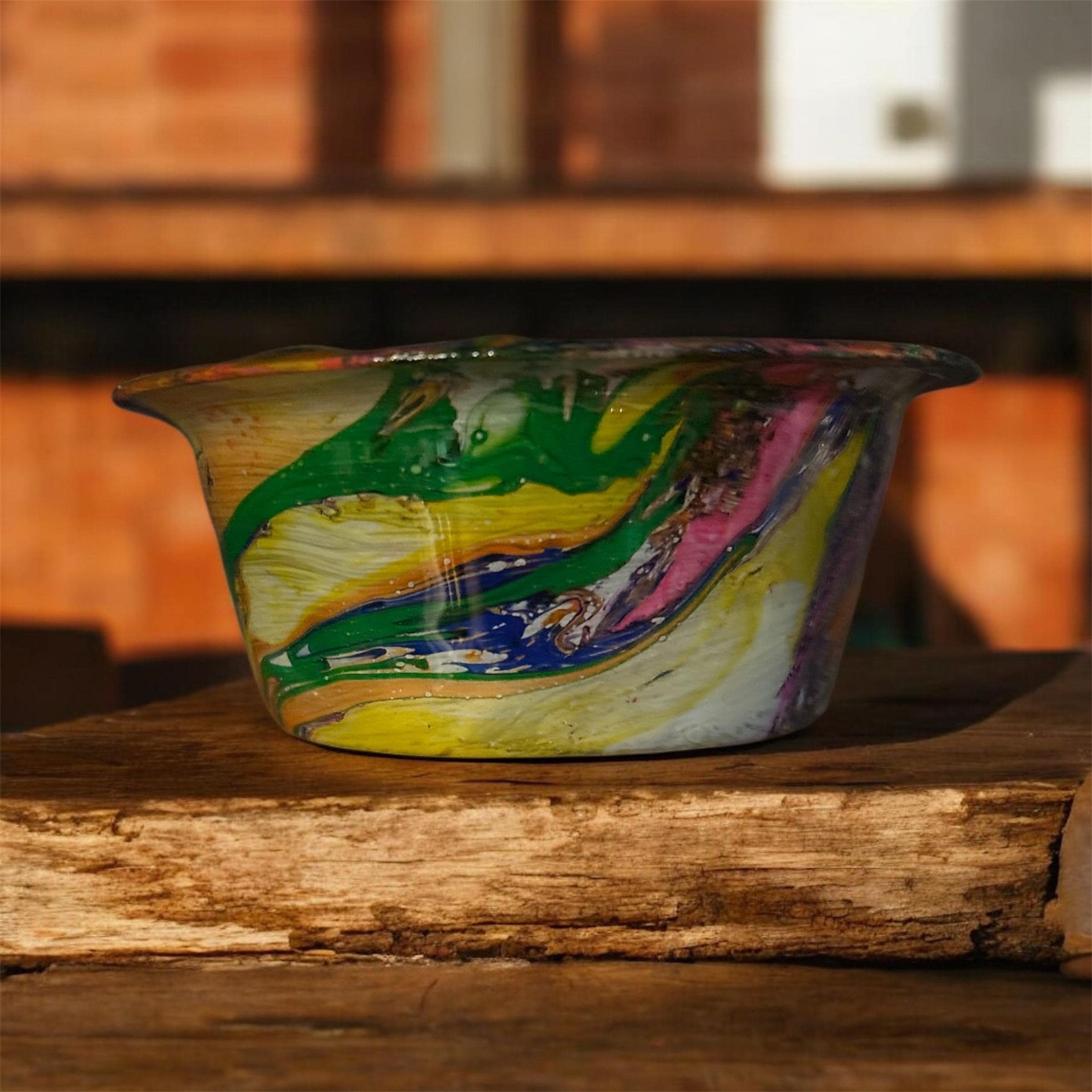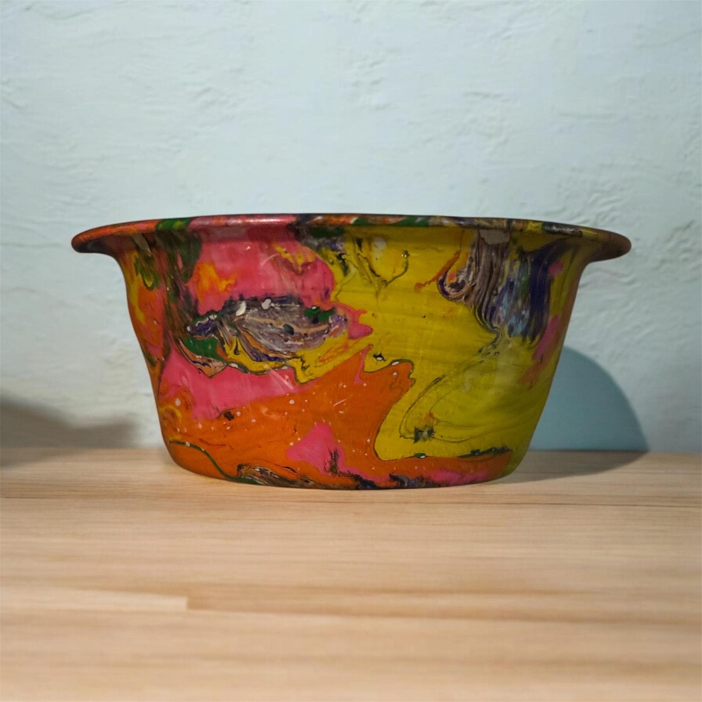 Add a touch of style to your pet’s mealtime with our handmade epoxy-coated stainless steel dog bowls. Each 1 cup (8 oz) bowl is individually crafted and hand-dipped, ensuring that no two bowls are ever alike. The unique epoxy designs make every piece a one-of-a-kind creation, perfect for pet owners who love functional art.