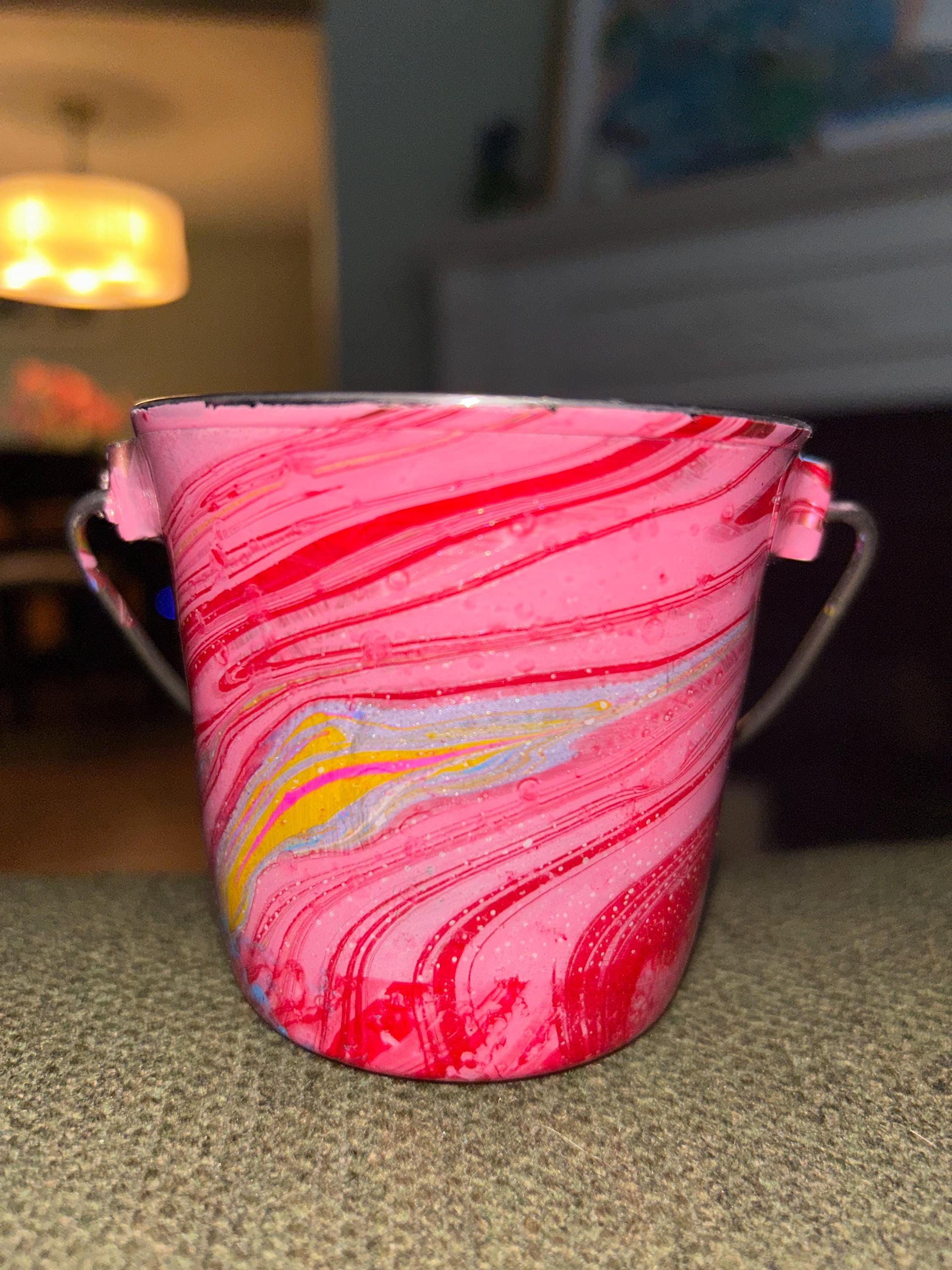 Upgrade your pet’s watering setup with our handmade epoxy-coated stainless steel water buckets. Each 1/2 pint bucket is individually hand-dipped and finished, ensuring no two pieces are ever alike. The unique epoxy designs make every bucket a one-of-a-kind creation that combines function with style.