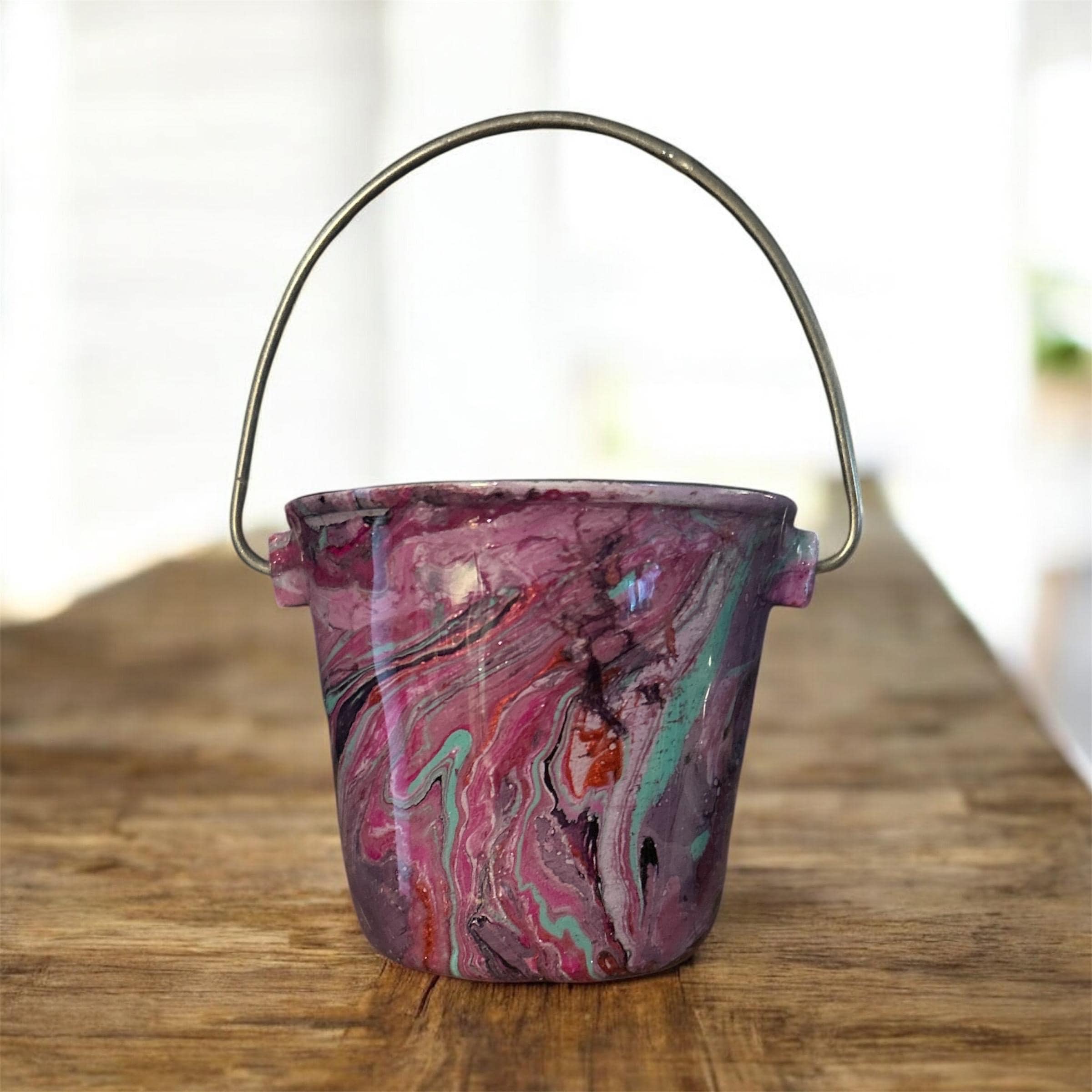 Upgrade your pet’s watering setup with our handmade epoxy-coated stainless steel water buckets. Each 1/2 pint bucket is individually hand-dipped and finished, ensuring no two pieces are ever alike. The unique epoxy designs make every bucket a one-of-a-kind creation that combines function with style.