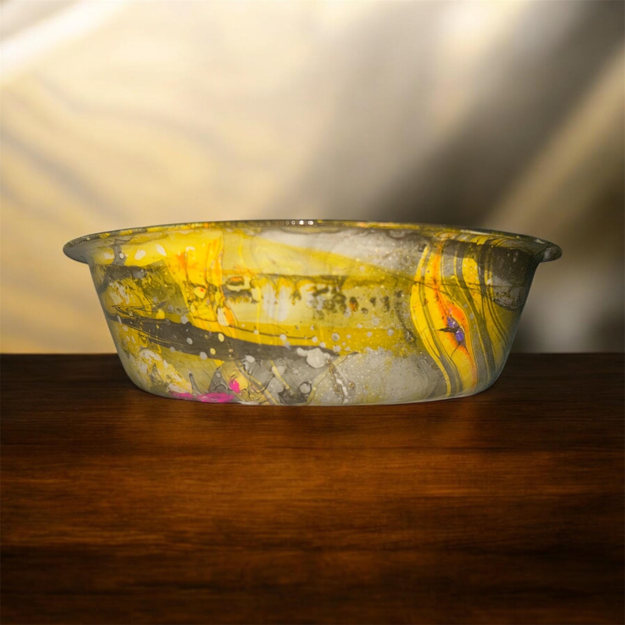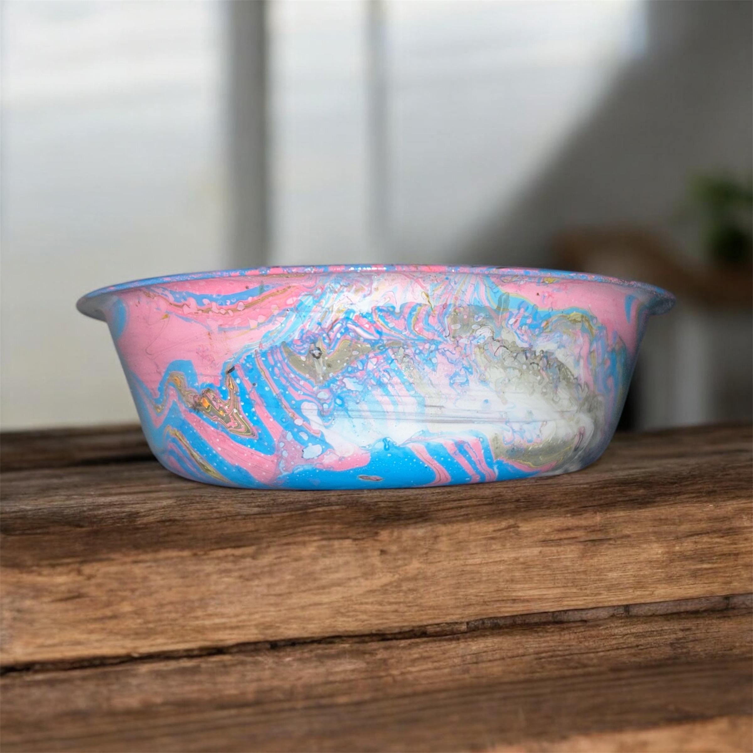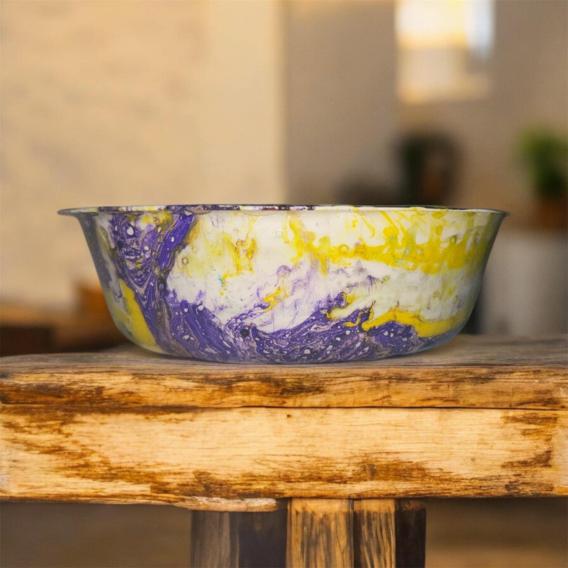 Add a touch of style to your pet’s mealtime with our handmade epoxy-coated stainless steel dog bowls. Each 1.5 cup (12 oz) bowl is individually crafted and hand-dipped, ensuring that no two bowls are ever alike. The unique epoxy designs make every piece a one-of-a-kind creation, perfect for pet owners who love functional art.