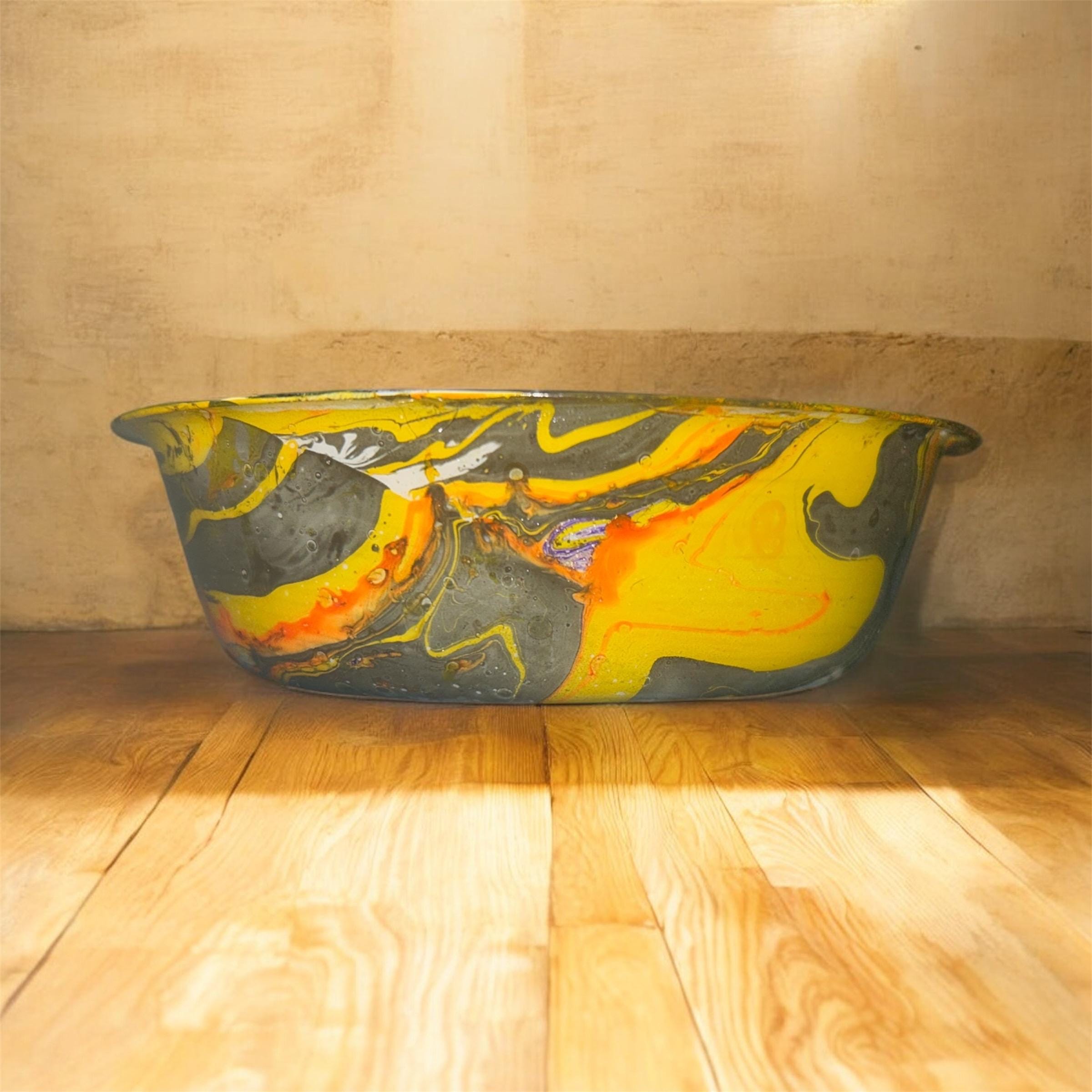 To preserve the beauty and durability of the epoxy finish, these bowls are not dishwasher safe. Hand wash only, do not soak, and handle with care. Please avoid dropping, as epoxy is not shatter-resistant.