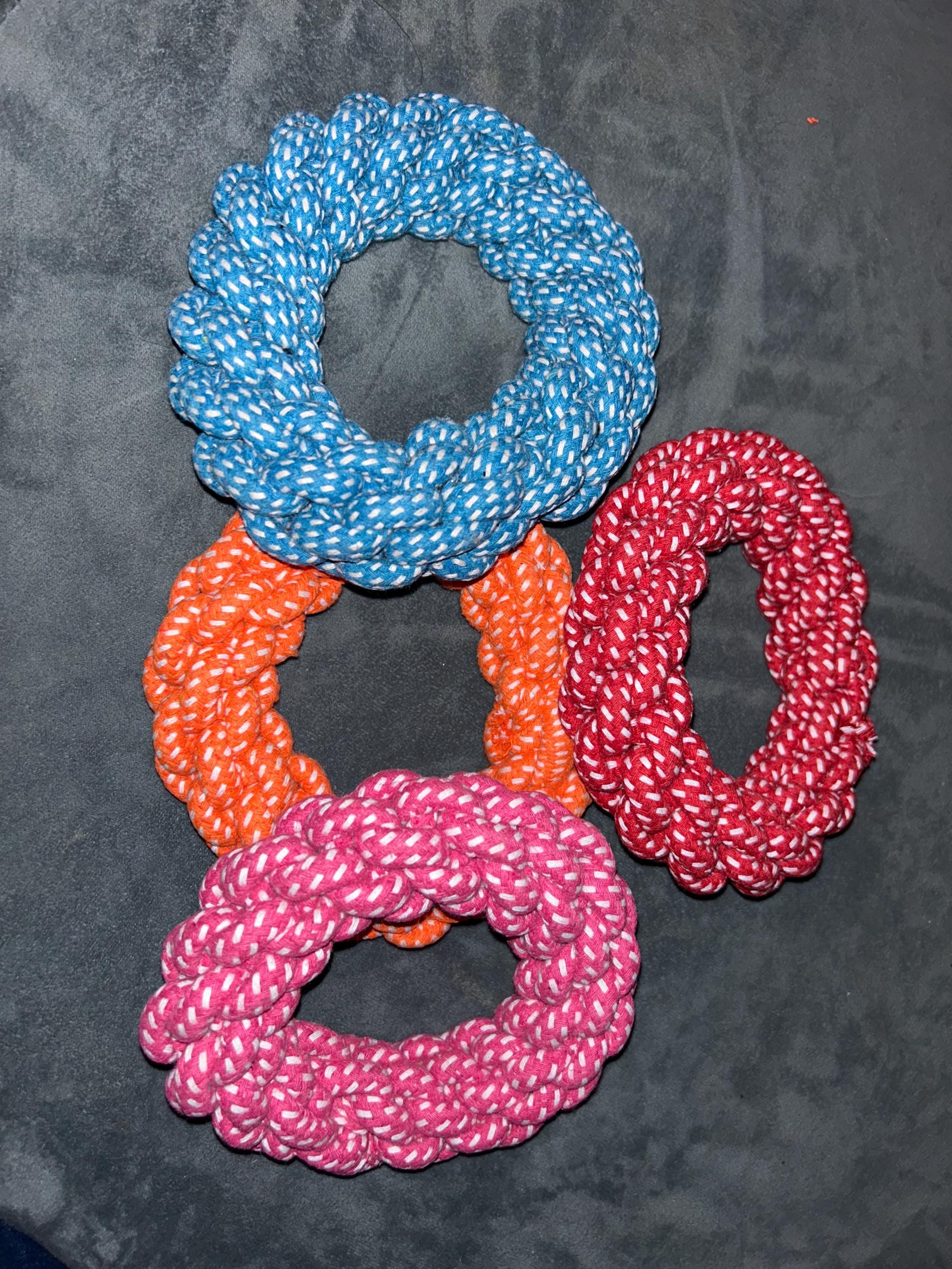 Built for fun and durability, our Heavy Duty Rope Donut Dog Toy is perfect for dogs who love to chew, tug, and play! Crafted from thick, tightly twisted rope, this sturdy donut-shaped toy is designed to stand up to enthusiastic play while remaining gentle on your dog’s teeth and gums.