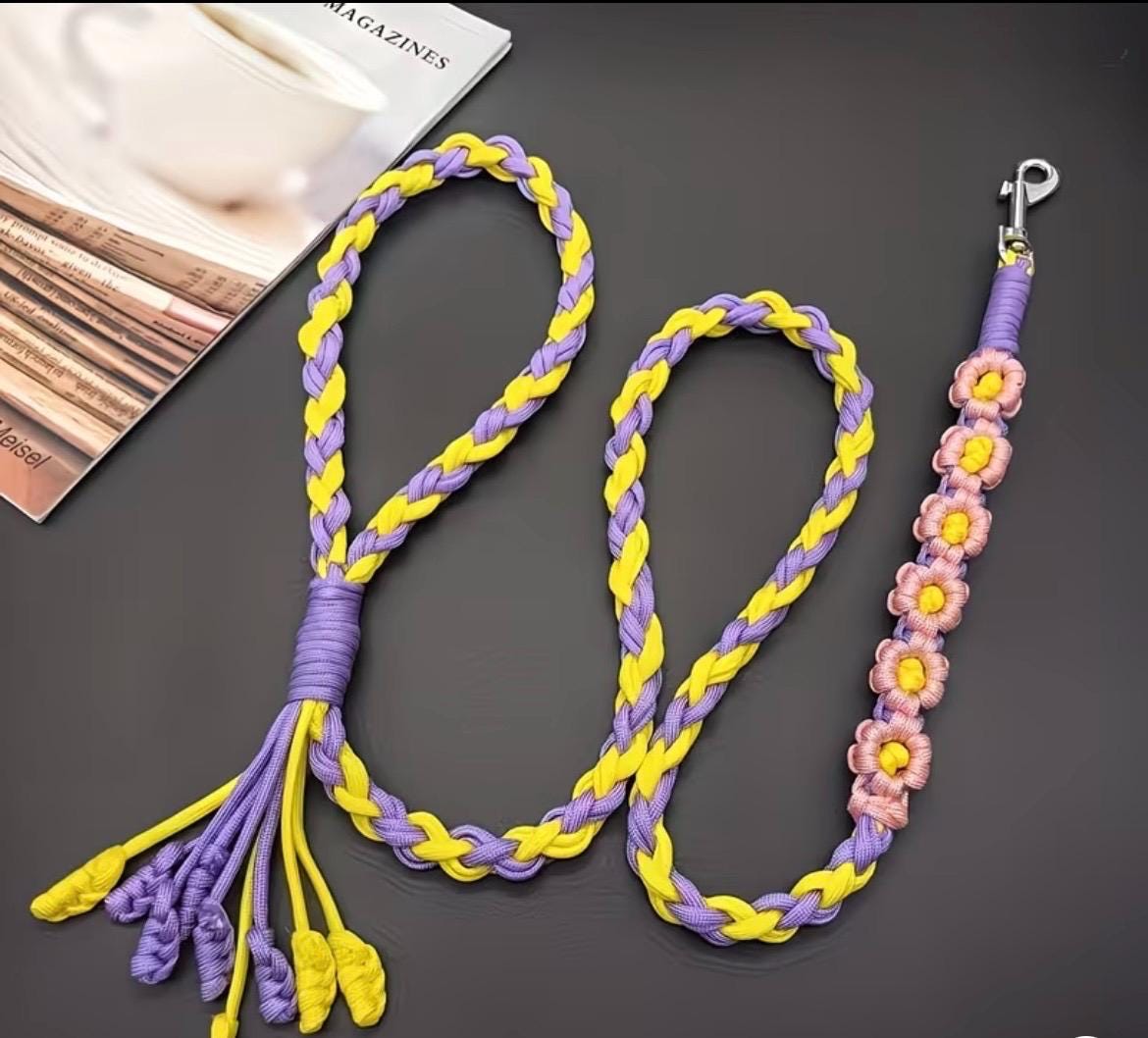 Add strength, style, and charm to your daily walks with our 8-Strand Braided Paracord Dog Lead with Flowers. Hand-crafted using durable paracord, this lead features an intricate 8-strand braid for enhanced strength and a beautiful woven flower accent that adds a unique, decorative touch.