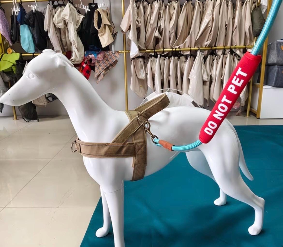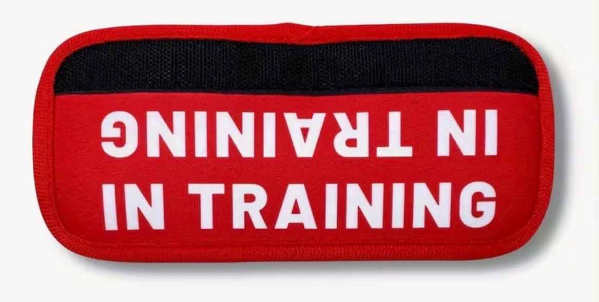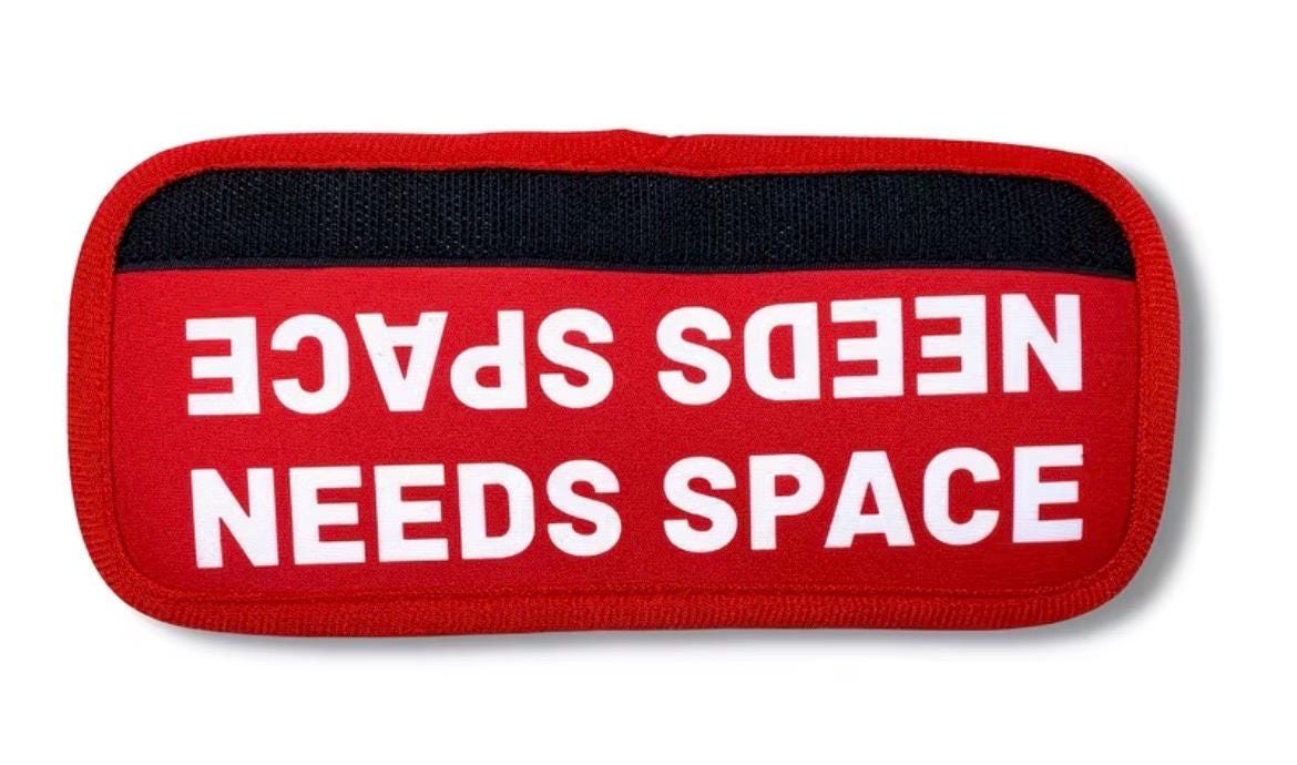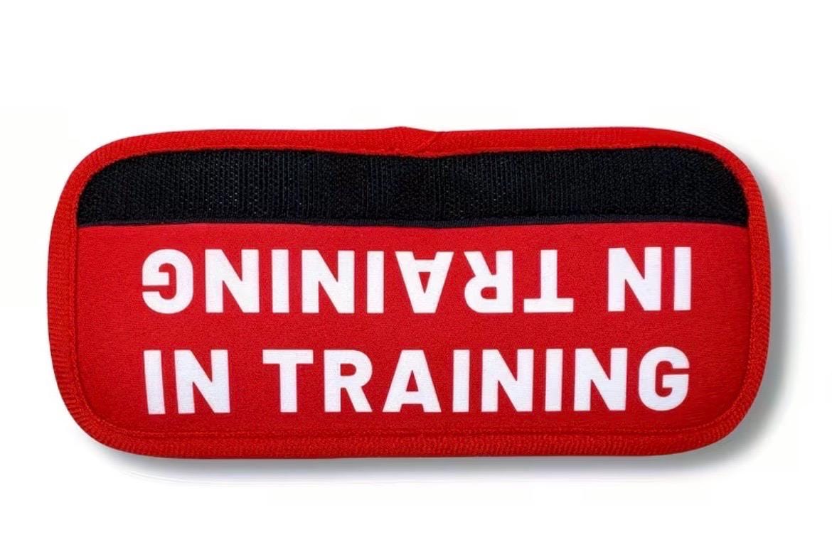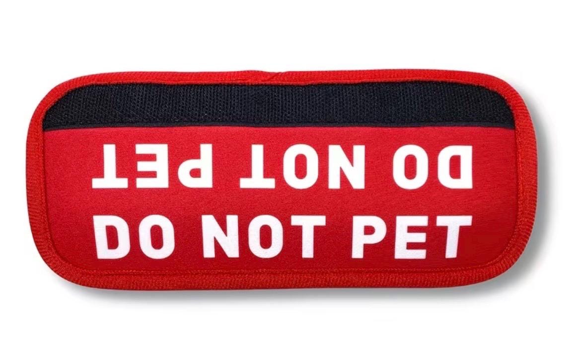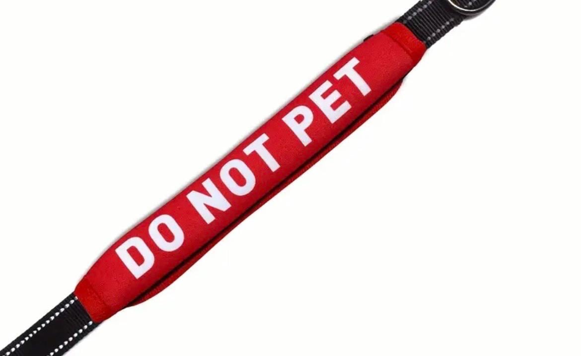 Featuring white lettering on a red background, the message is easy to read from a distance. Available wording includes “In Training,” “Do Not Pet,” and “Needs Space,” making it an excellent tool for training, reactive dogs, working dogs, or pups who simply prefer their personal space.