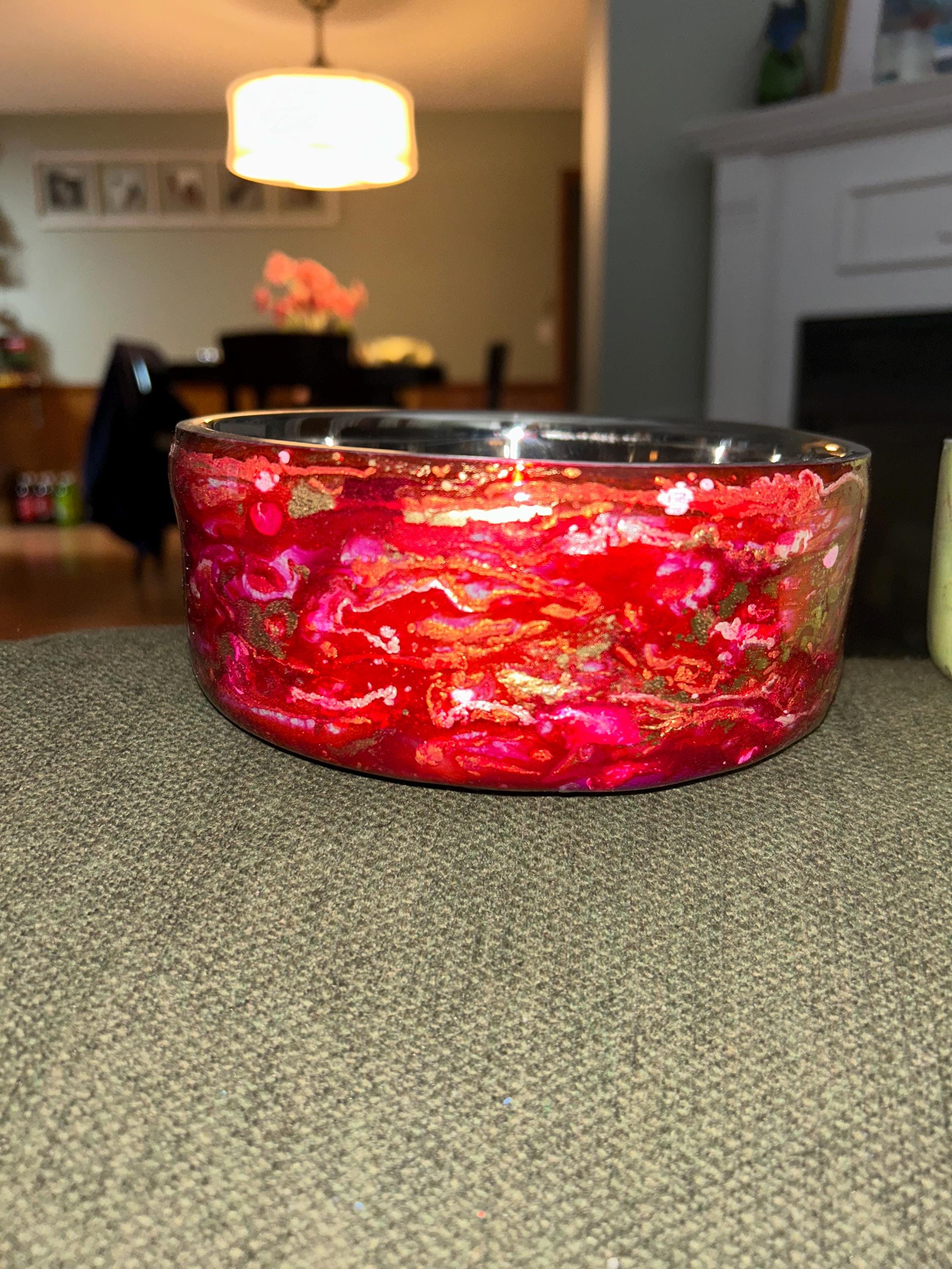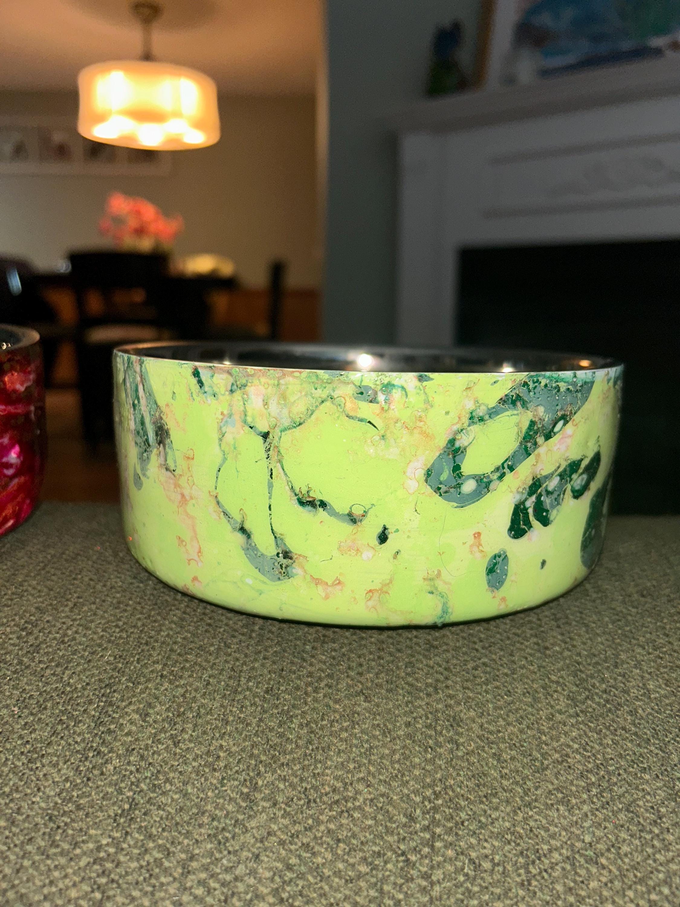 Add a touch of style to your pet’s mealtime with our handmade epoxy-coated stainless steel dog bowls. Each 4 cup (32 oz) bowl is individually crafted and hand-dipped, ensuring that no two bowls are ever alike. The unique epoxy designs make every piece a one-of-a-kind creation, perfect for pet owners who love functional art.